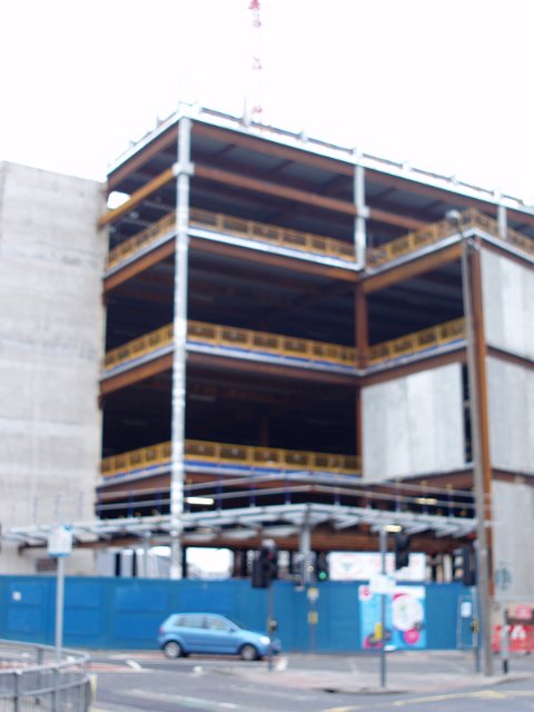 "surreal image of buildings under construction in central cardiff"