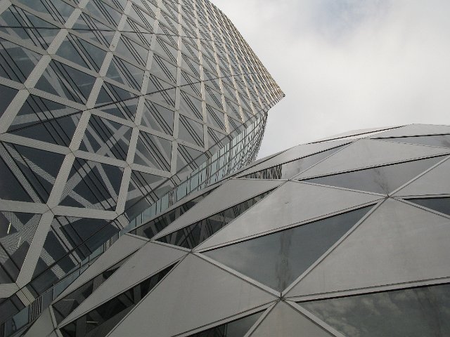 "shinjuku office buildings with triangular facades"