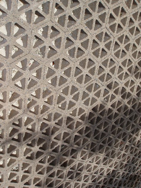 Architectural detail of decorative hexagonal concrete blocks viewed at an oblique high angle
