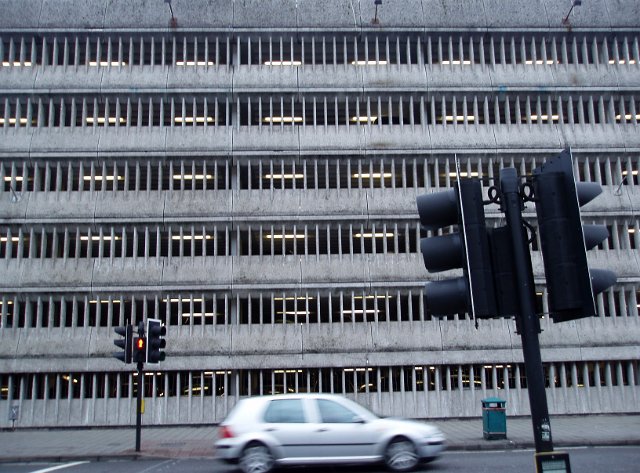 "dirty looking concrete car park"