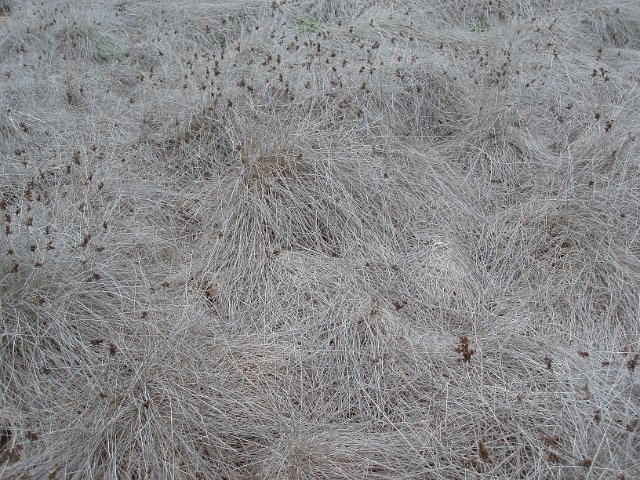 "a background of dry dead grasses"