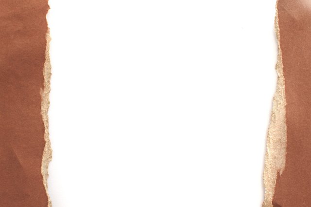 "white background framed by torn brown torn edges at each side"