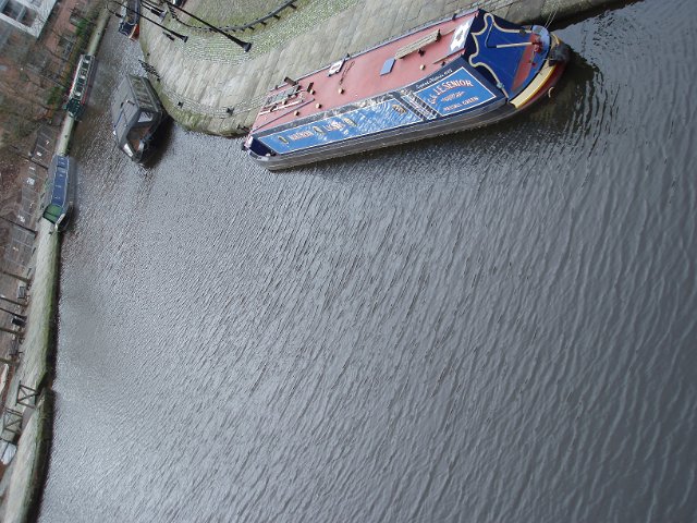 "moored canal barge, manchester"