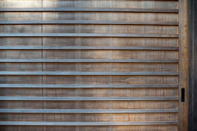 "Background texture and pattern of thin parallel wood strips on an old wooden panel"