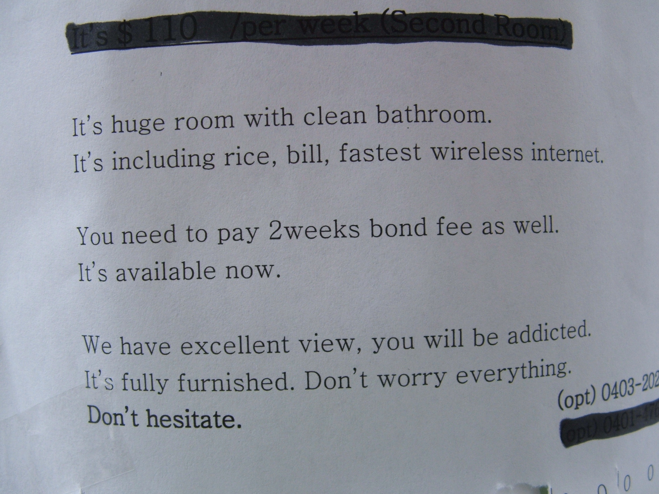 "a well written honglaise ad"