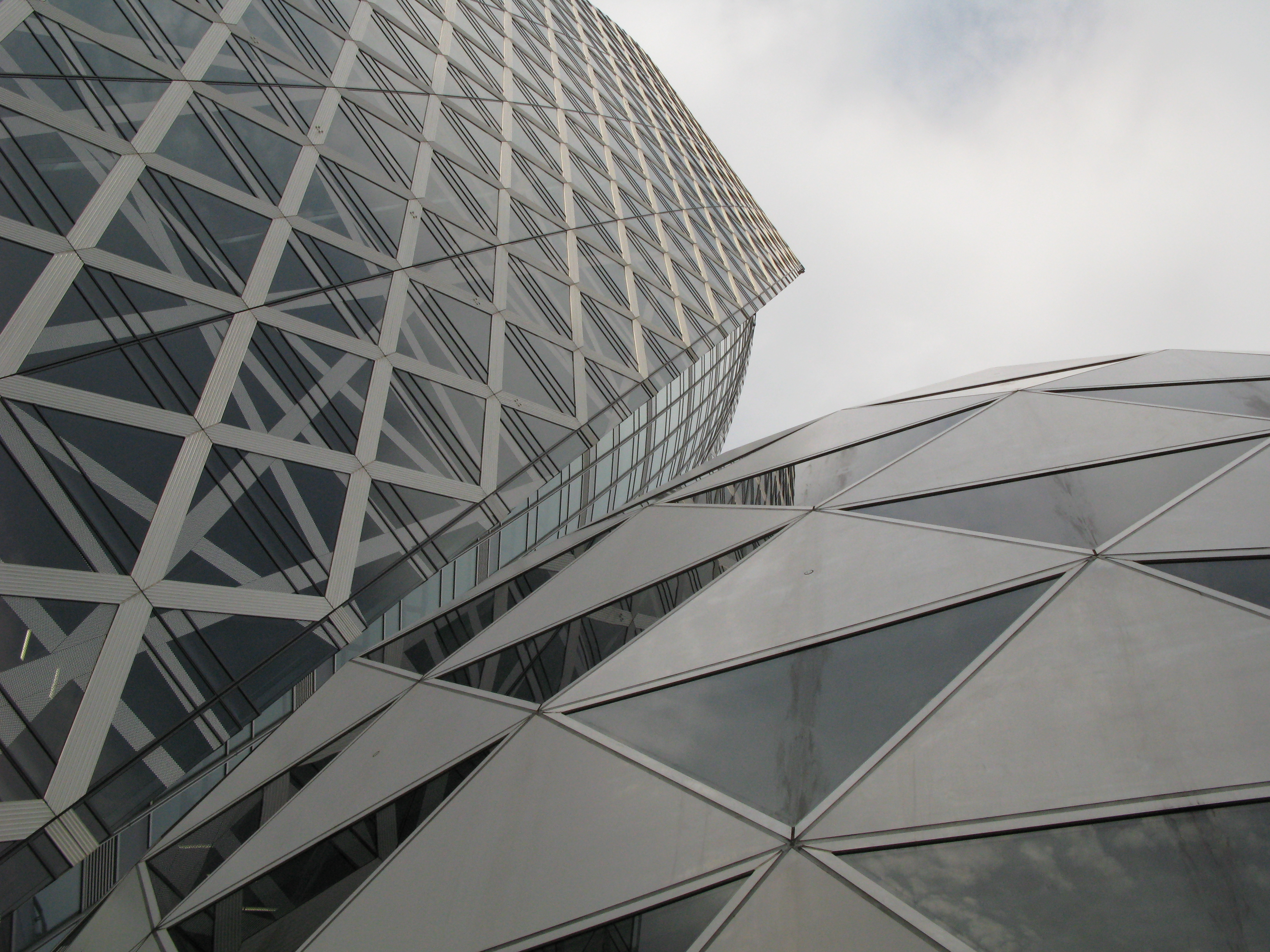 "shinjuku office buildings with triangular facades"