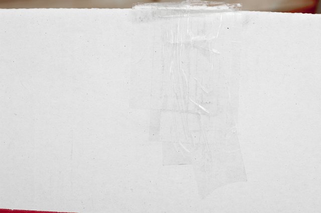 "Transparent packaging tape on the lid of a white cardboard box in a close up background view with copy space"
