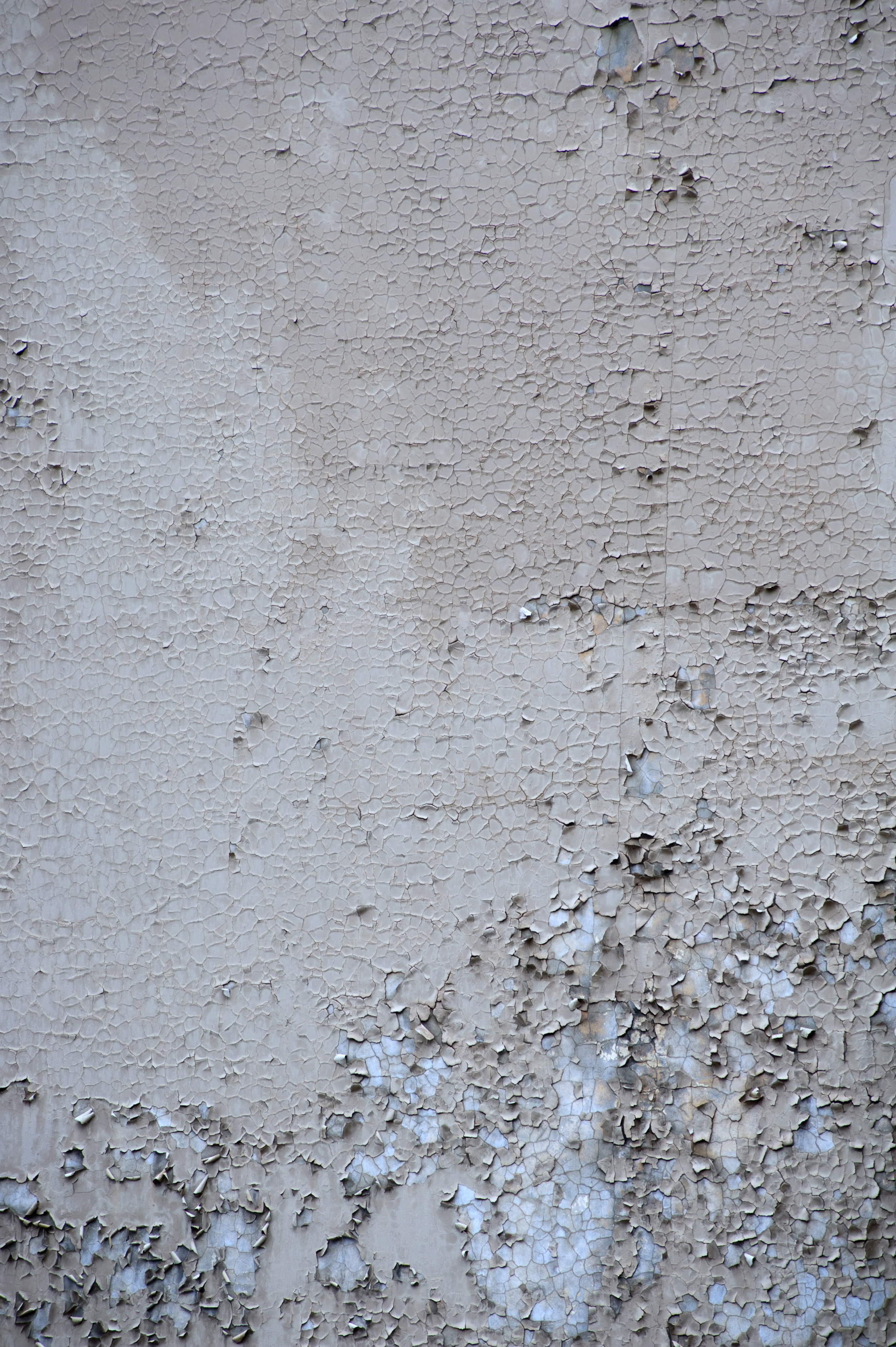 "Grey background with old paint decaying and peeling off the concrete or metal surface due to dampness. Close-up full frame view"
