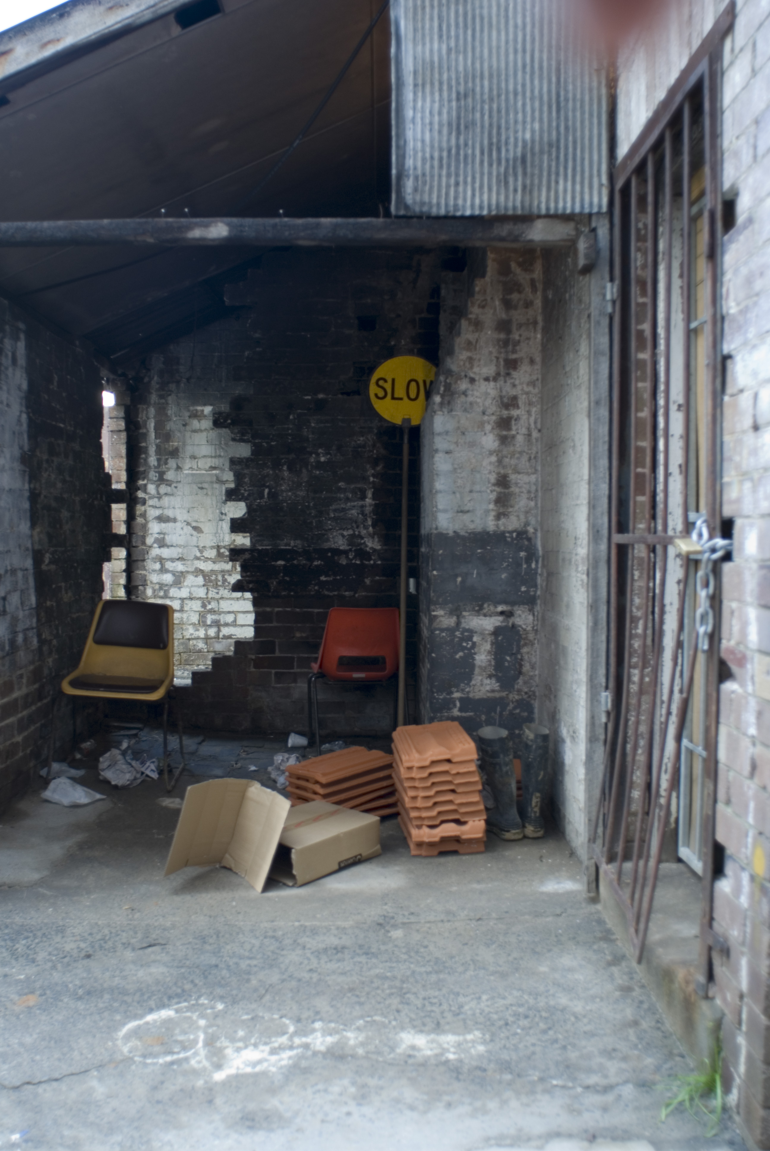 "interior of a decaying lean-to"