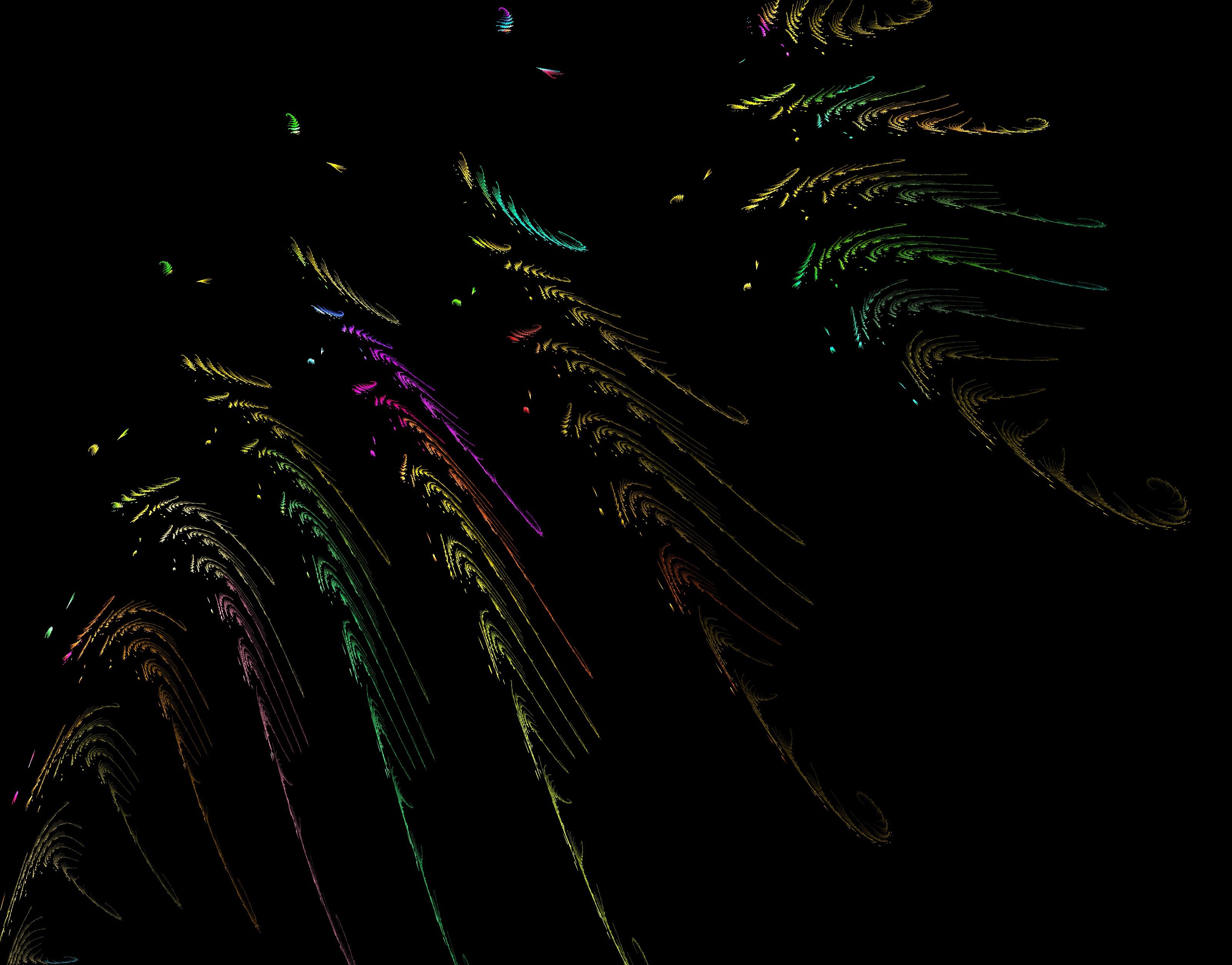 "computer generated fern fractal pattern on black"
