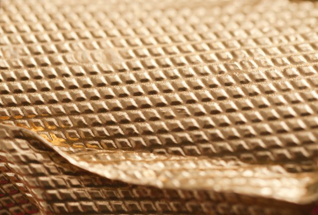 Extreme Close Up of Golden Textured Foil Wrapper from Champagne Bottle, Full Frame Background Image