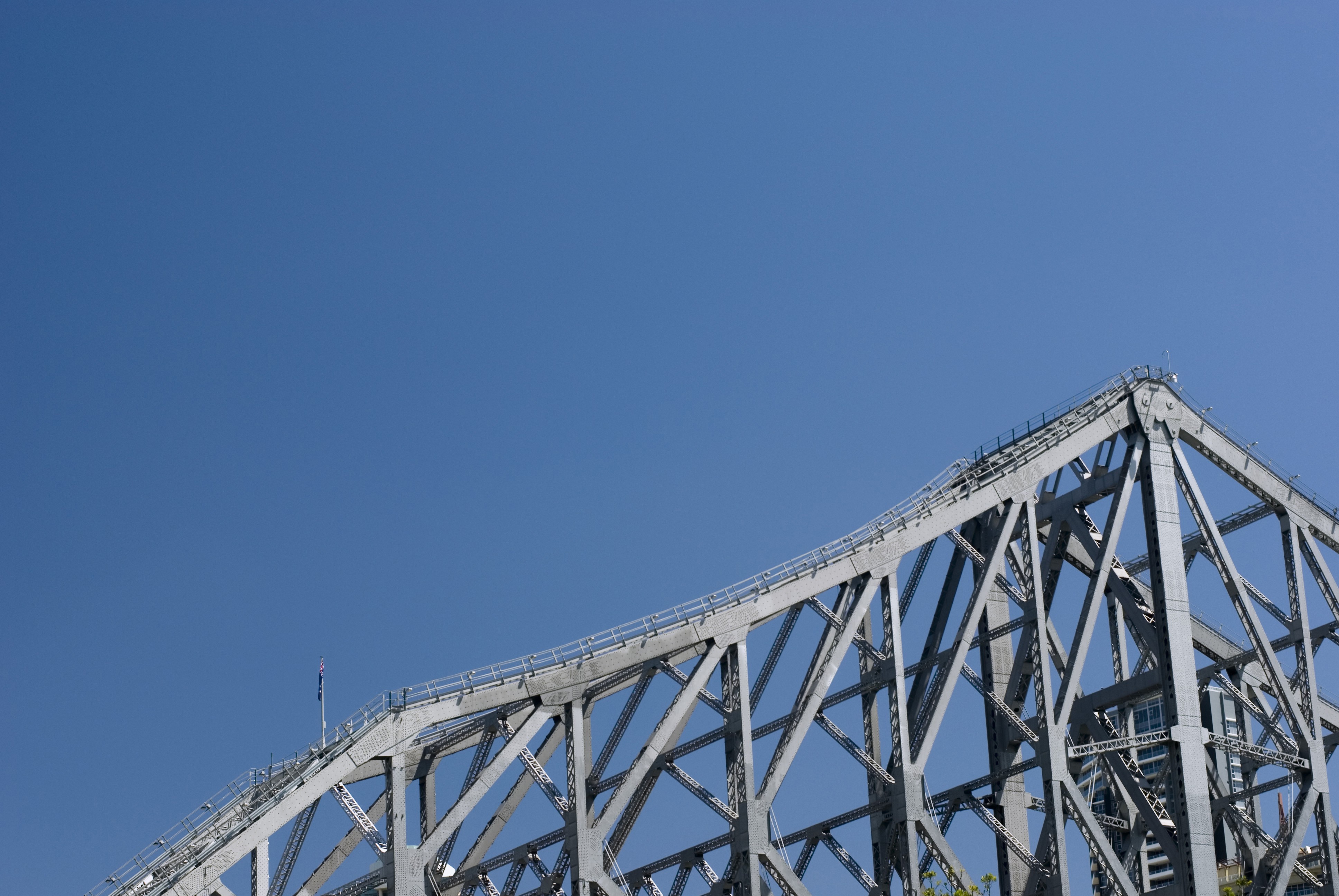 "the superstructure of a large metal road bridge, story bridge, brisbane, australia"
