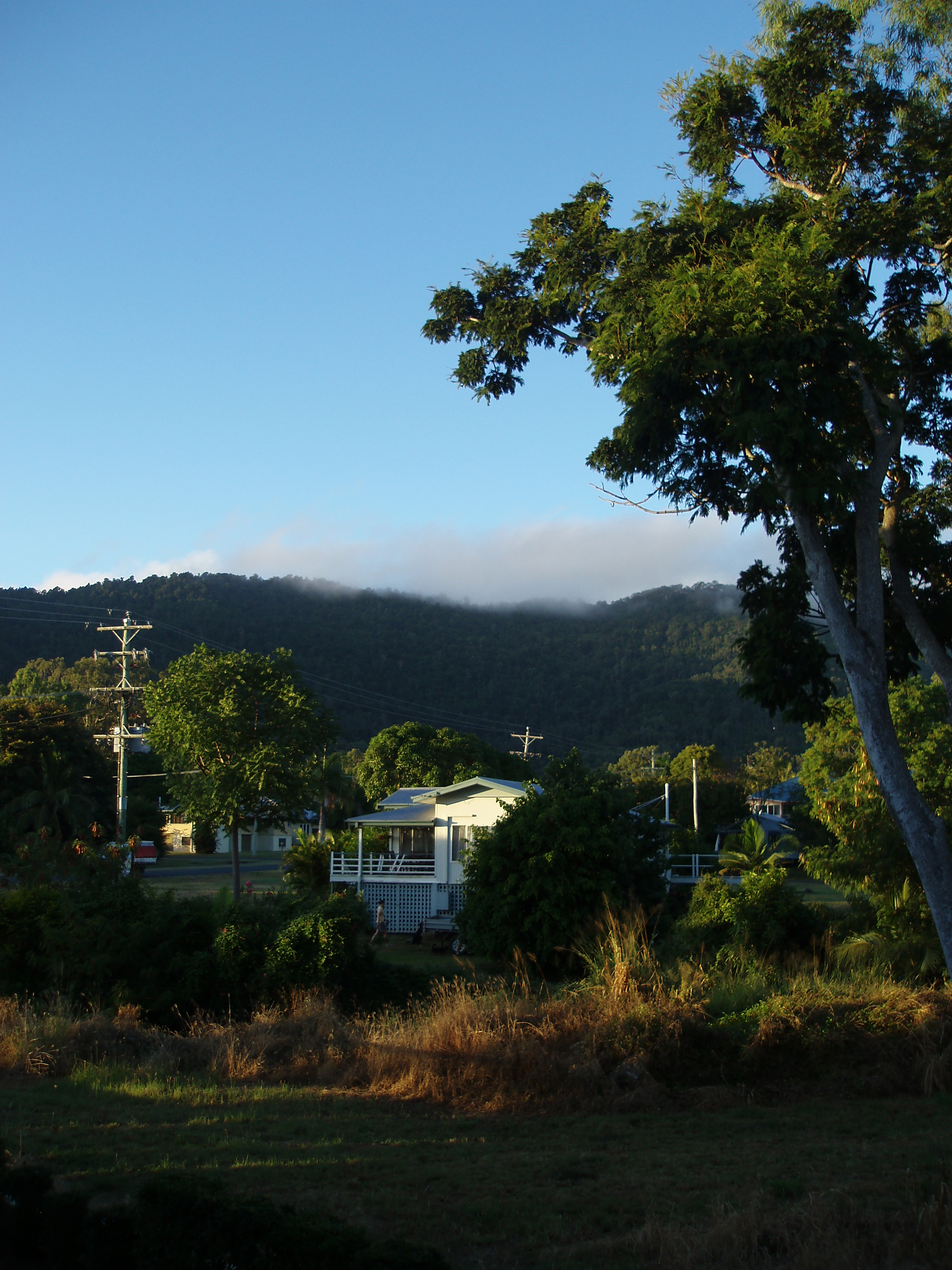 "tropical landscape with a white painted house"