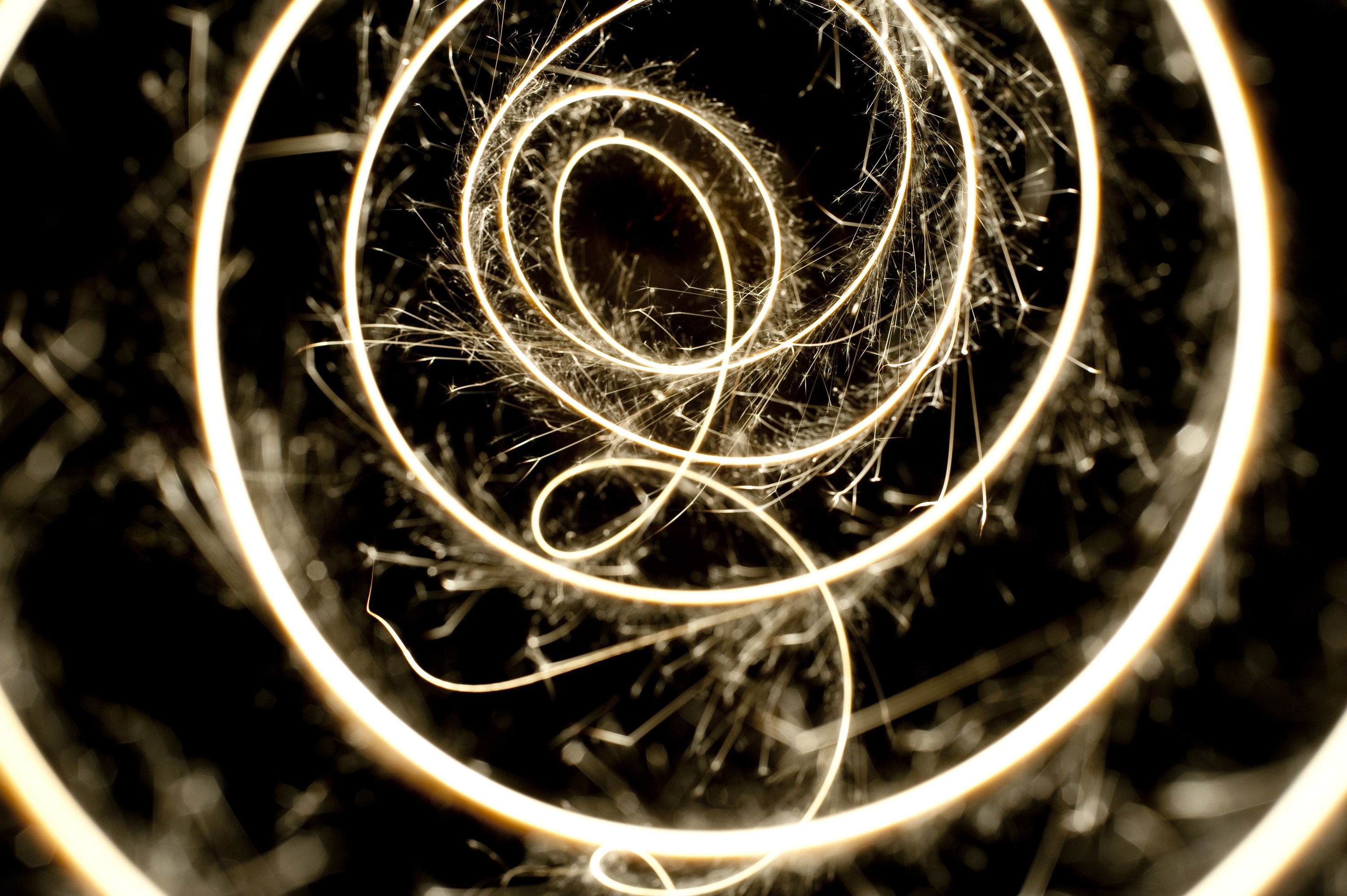 "a bright line of sparks plotting a looping curved pattern"
