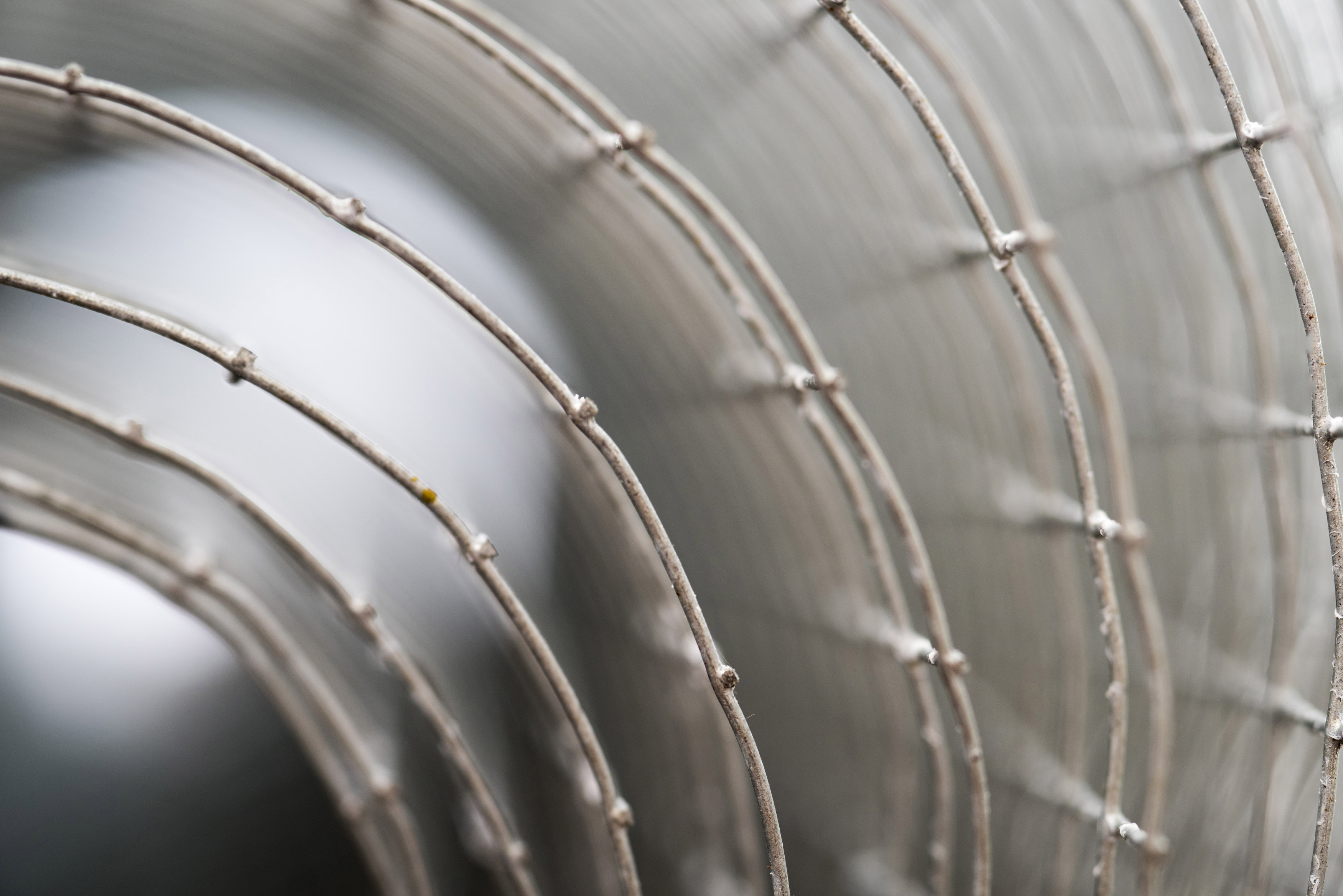 "Abstract concentric circular pattern formed by a roll of fencing wire mesh viewed end onto the coils with shallow dof"