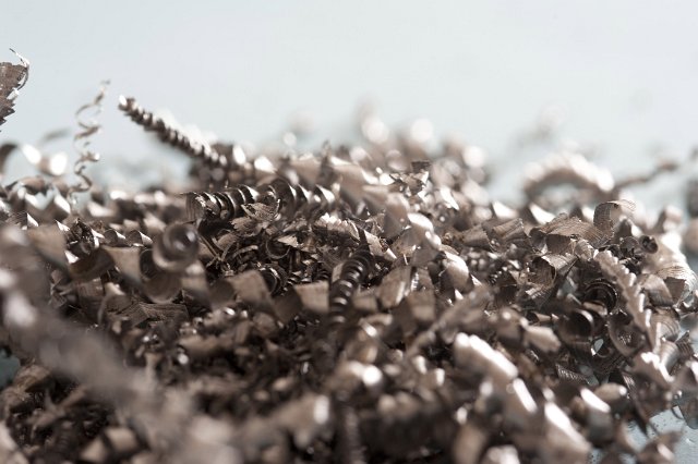 "Heap of industrial metal shavings or swarf produced as a waste product during machining"