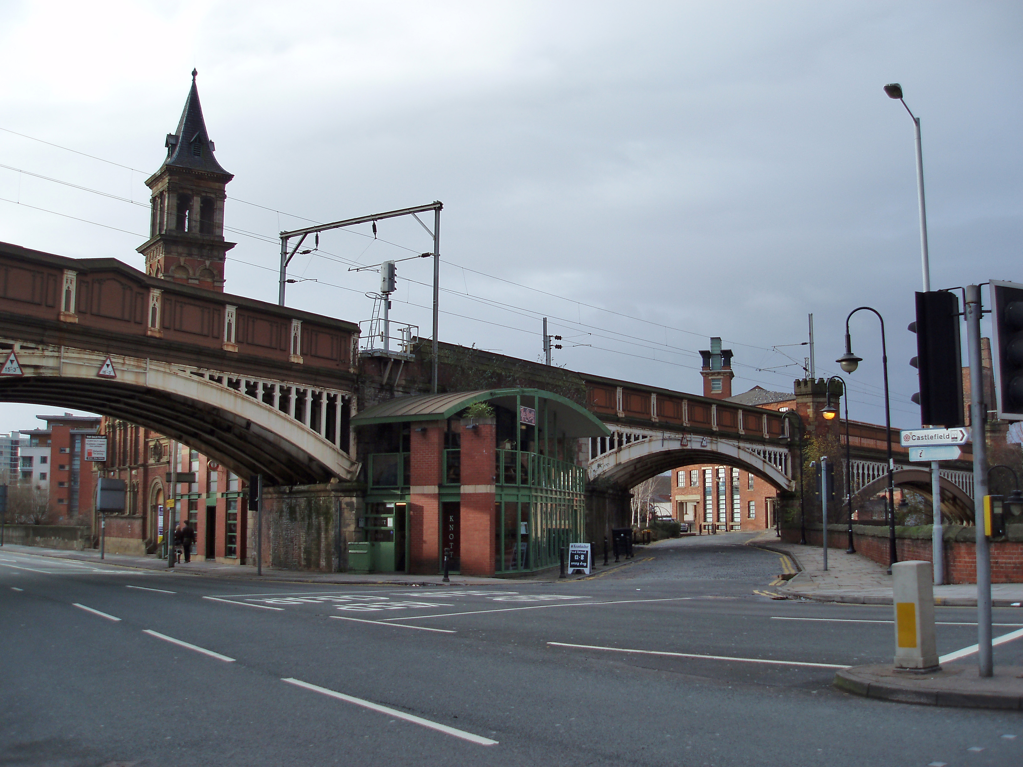 "cast iron railway viaducts, central manchester, england"
