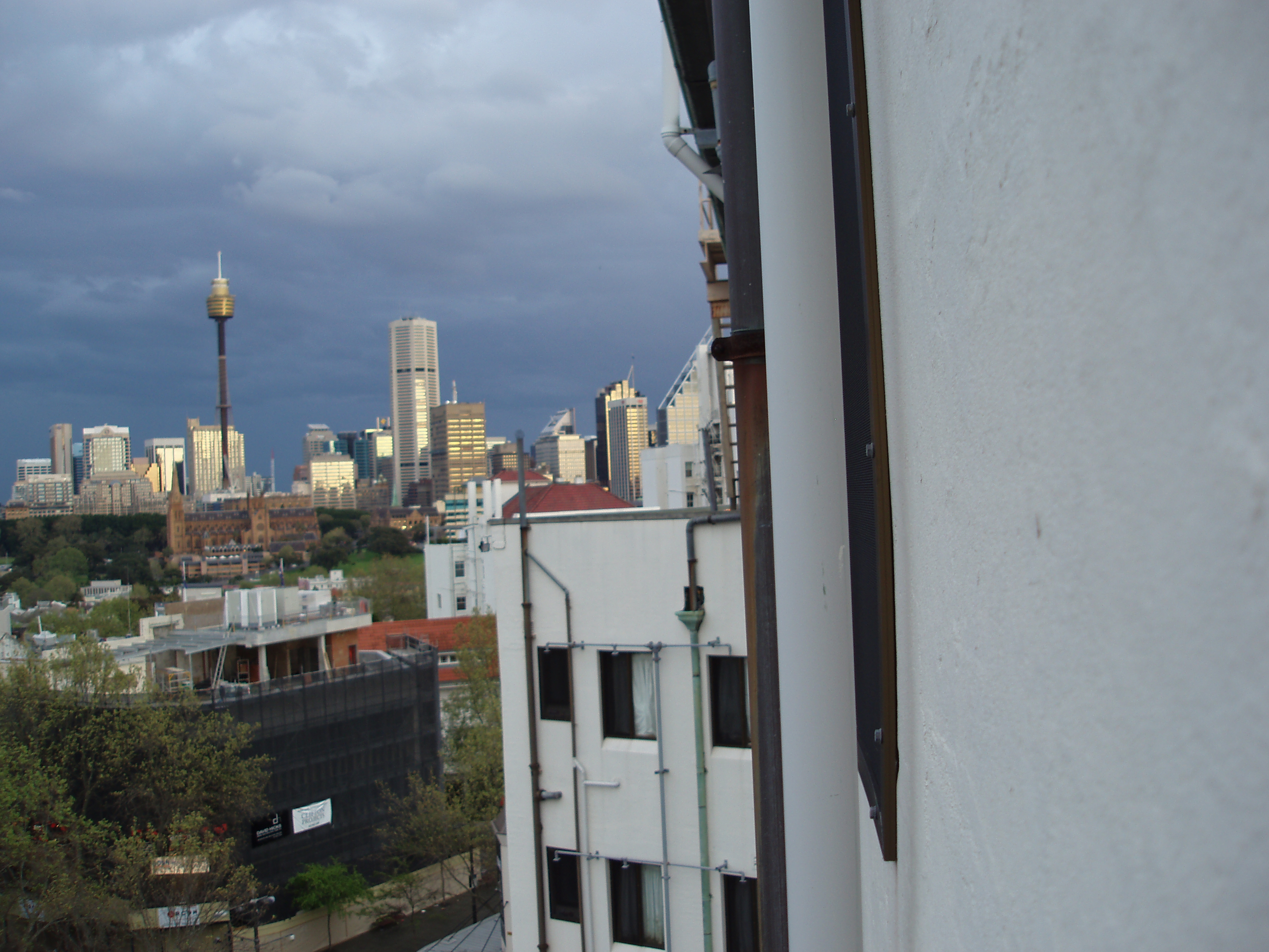 "looking out from a building towards the centre of town"