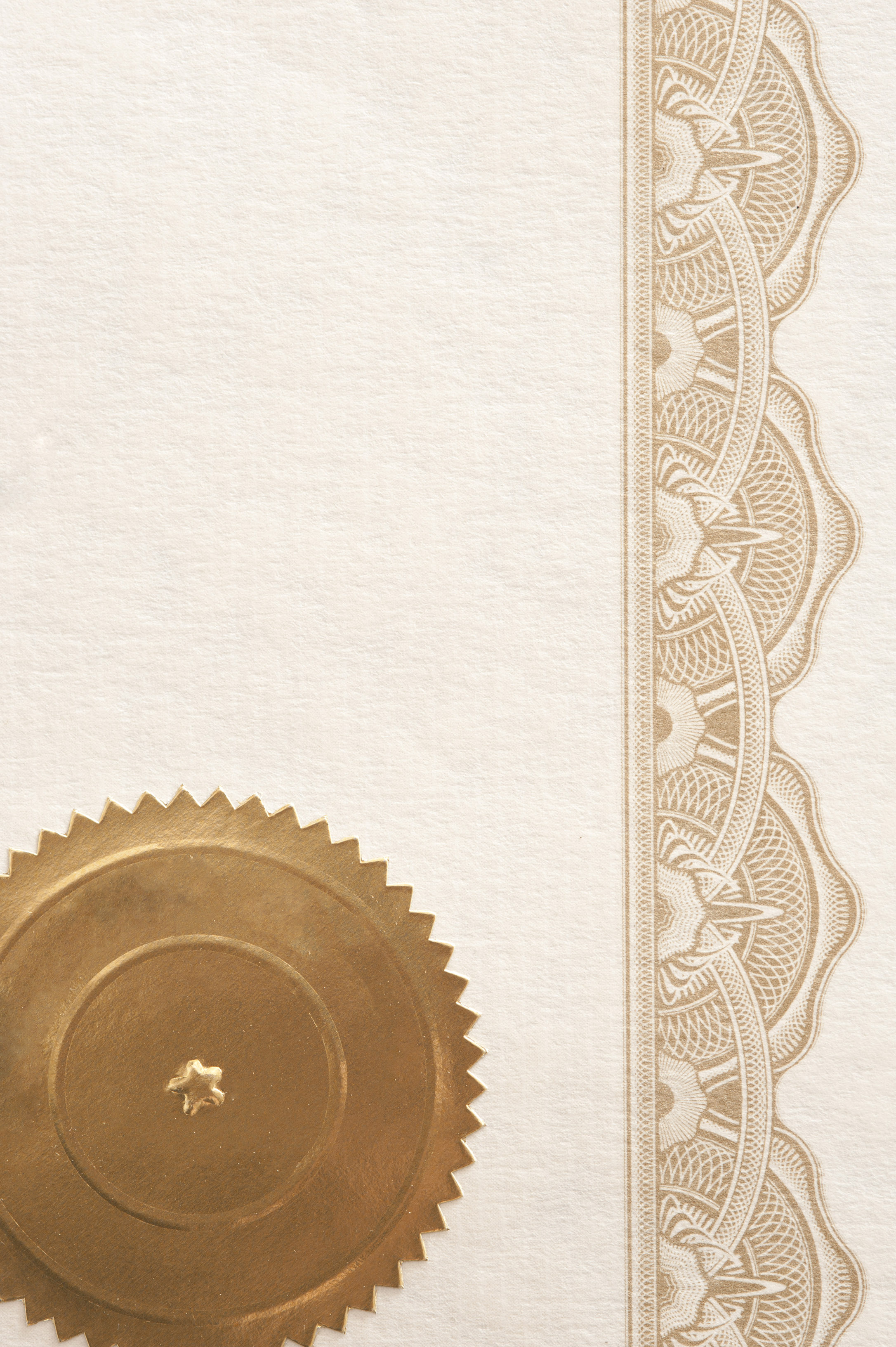 "decortative framed border and gold sticker with space for text"