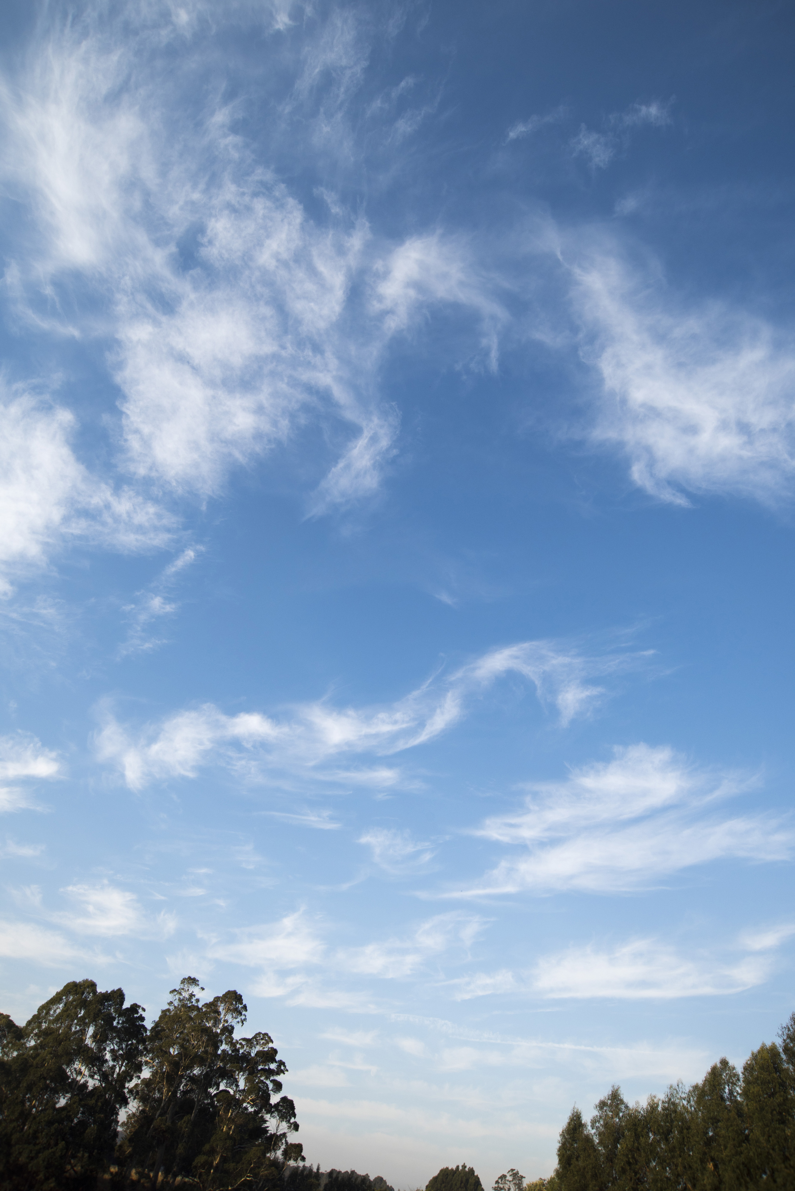 "a sky filled with layers of high altitude wispy clouds with a forest foreground"