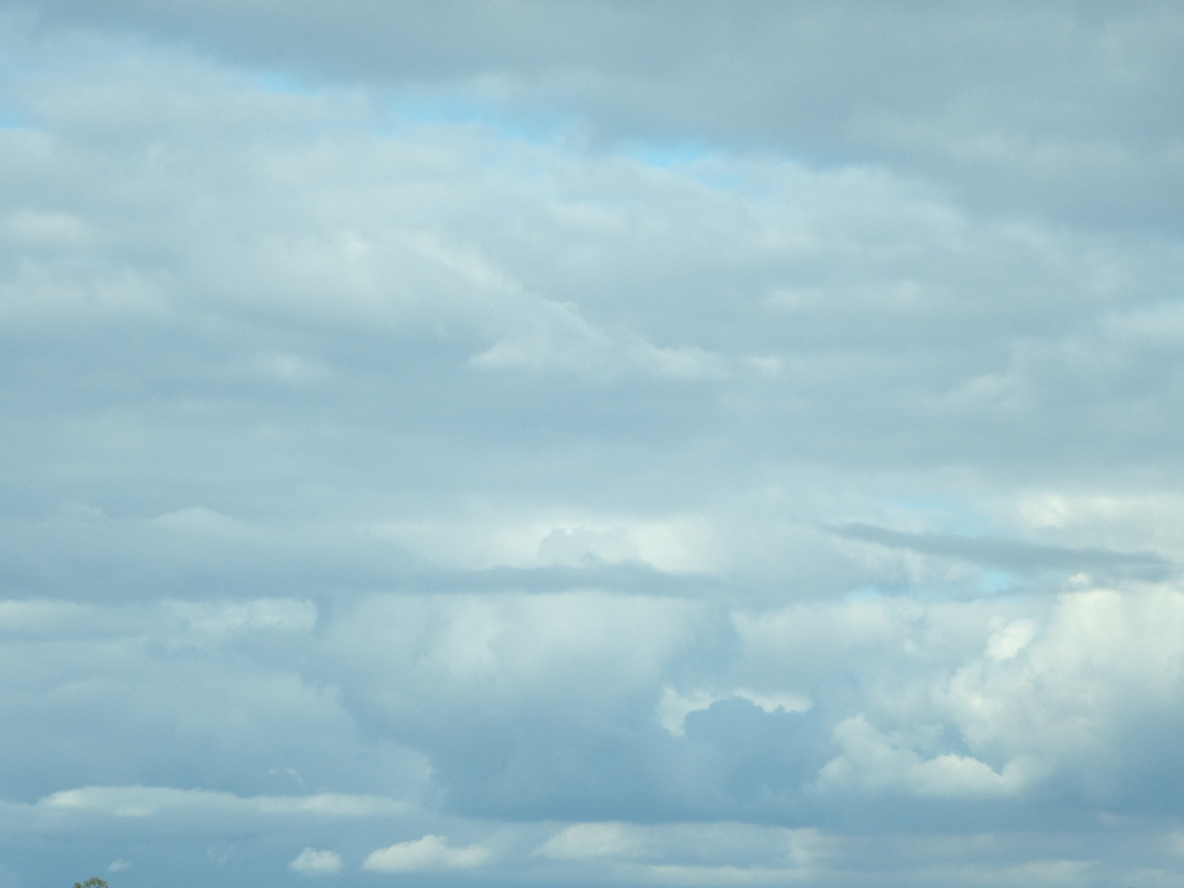 "an overcast sky filled with blue grey clouds"