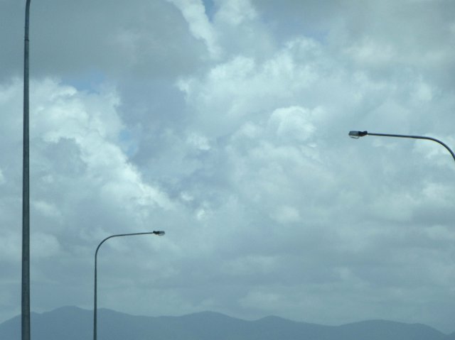 "a background of cloudy sky with lampposts"