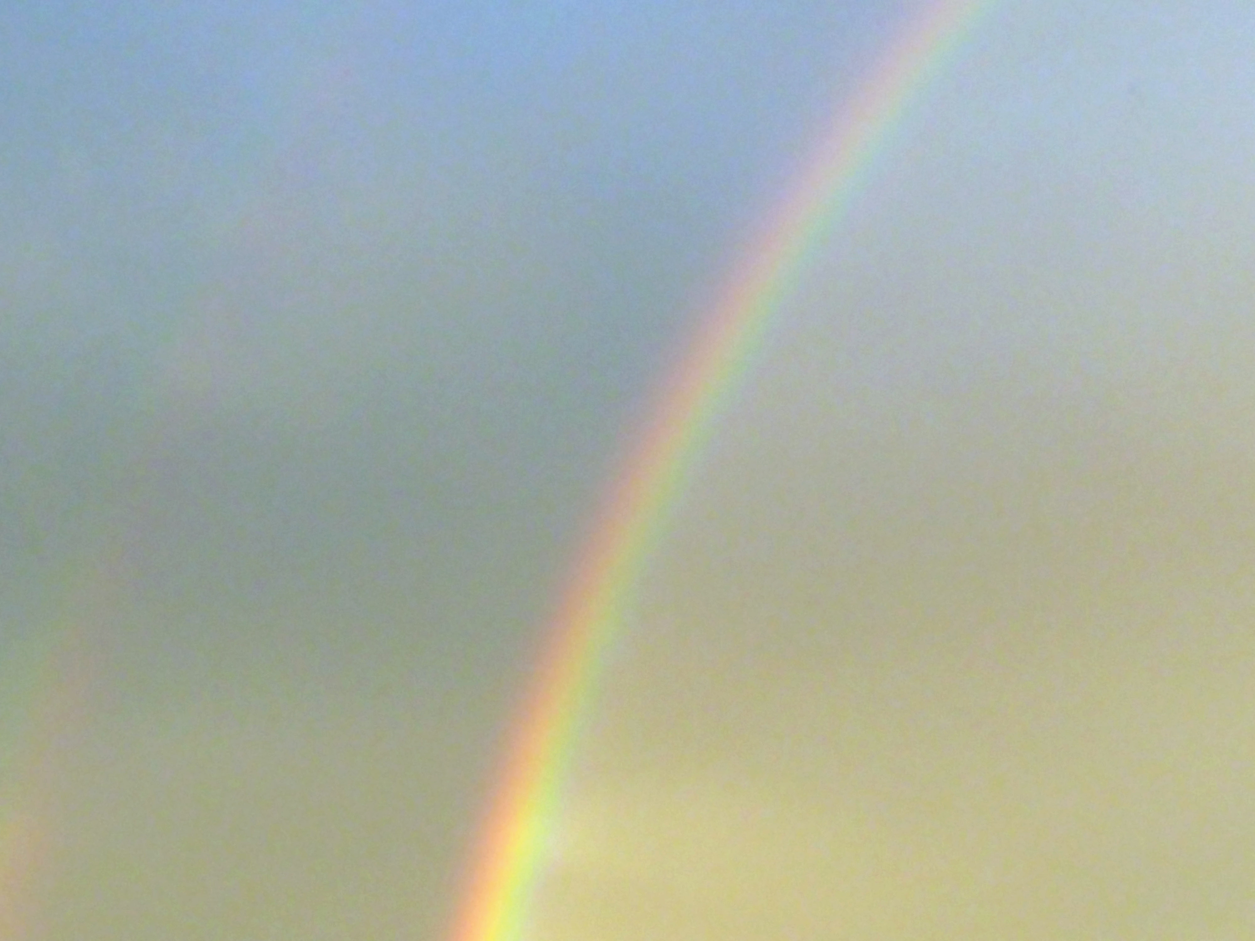 "a rainbow arching into a cloudless sky"