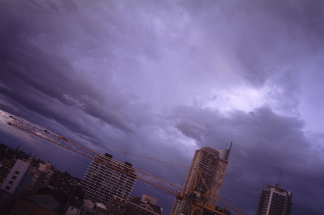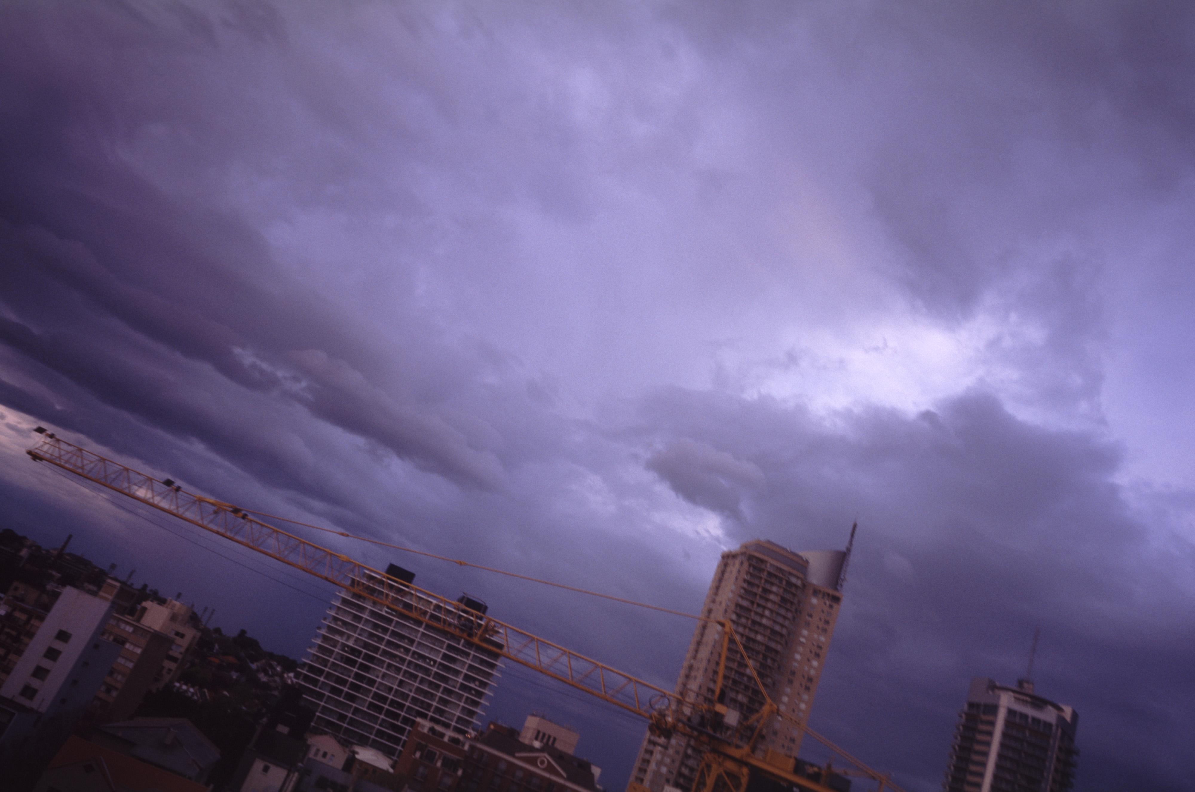 "a foreboding sky filled with a thick layer of nimbostratus cloud"