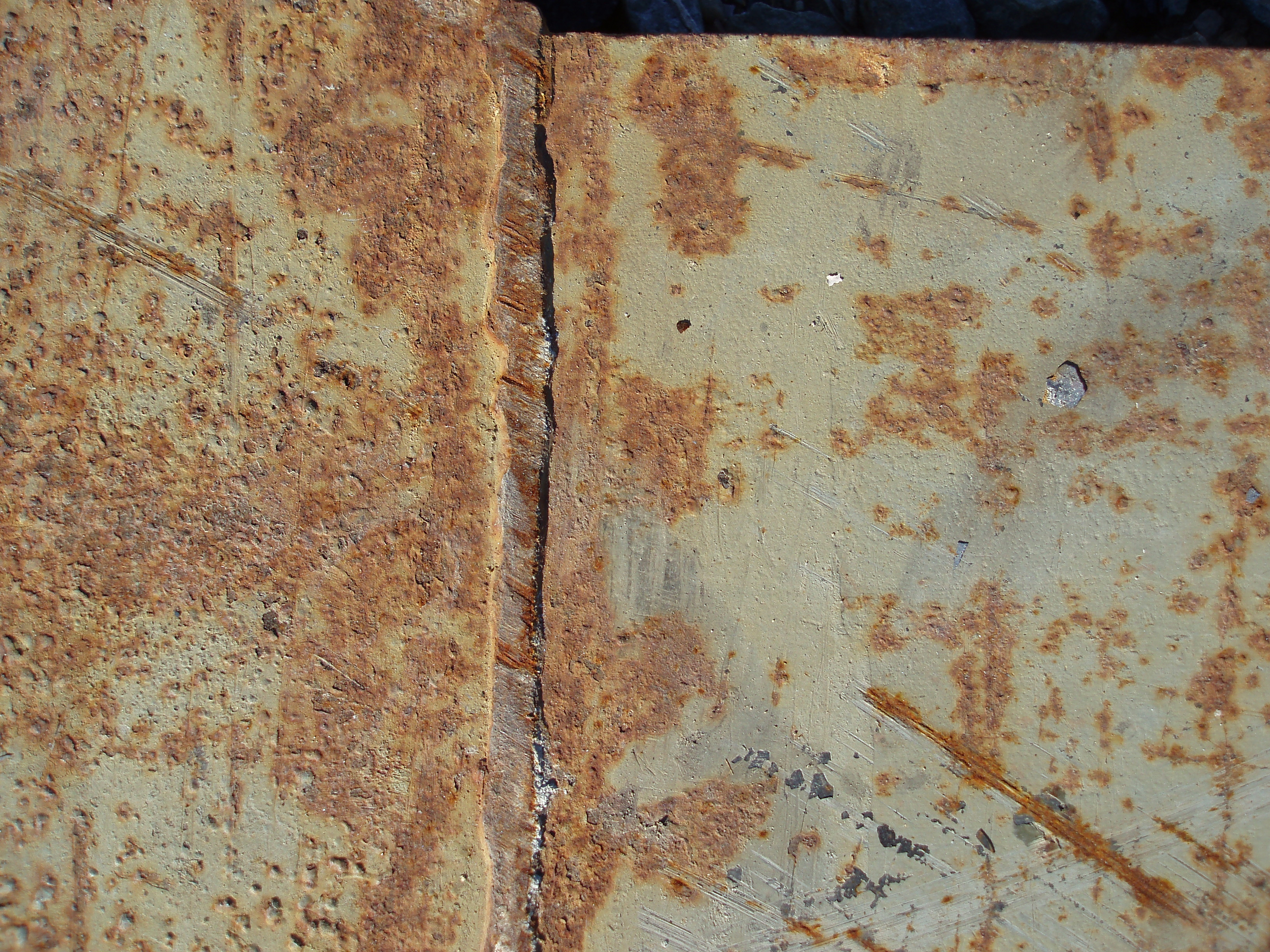 "a heavy iron girder pitted with surface rust"