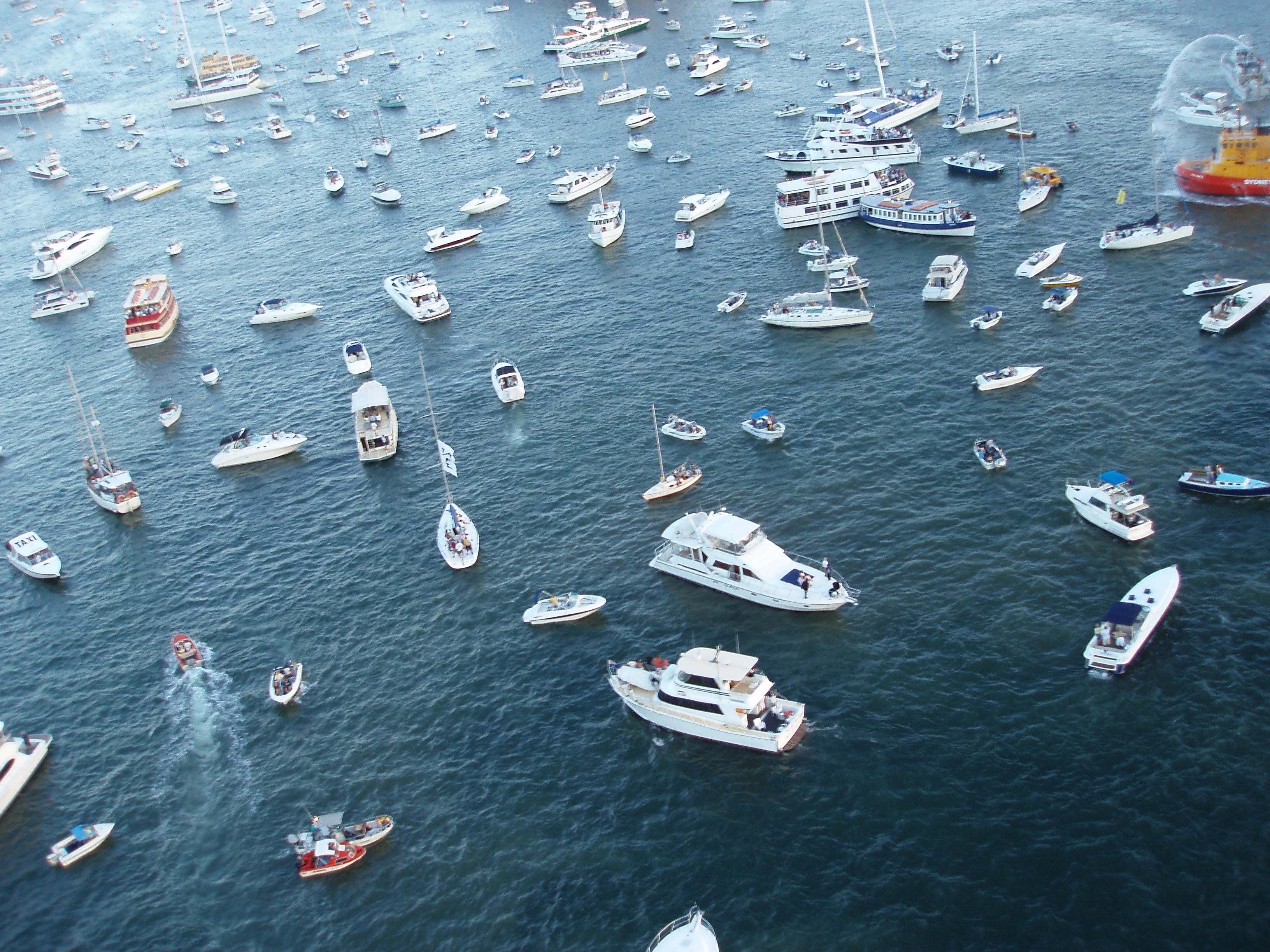 "a mass of boats sailing in different directions"
