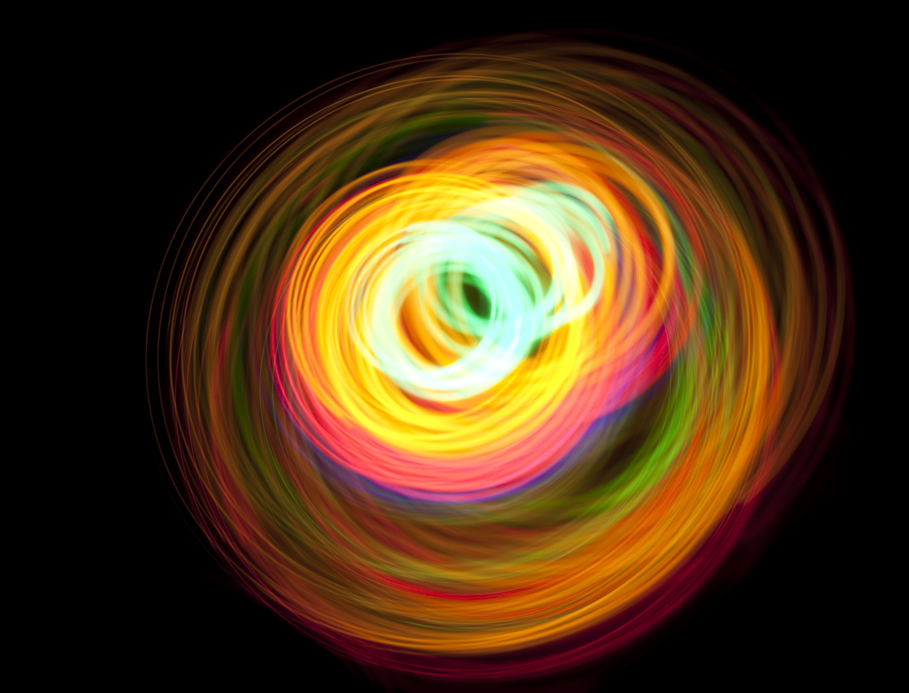"multiple overlapping circles of glowing light creating an abstract pattern"