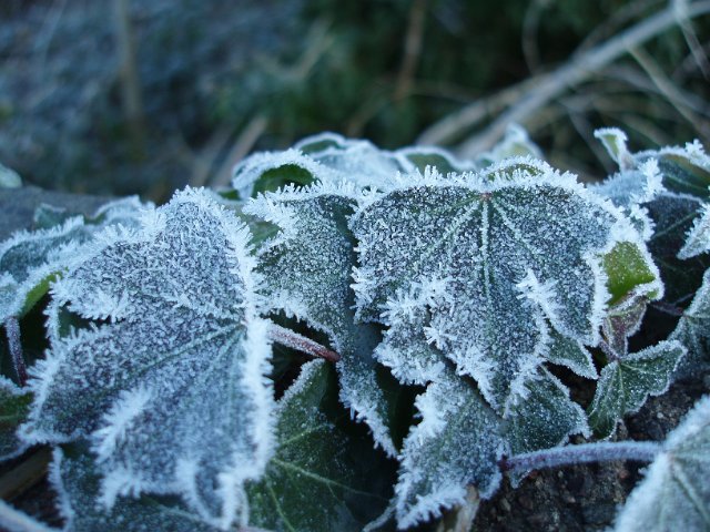 "ivy covered in winter frost"