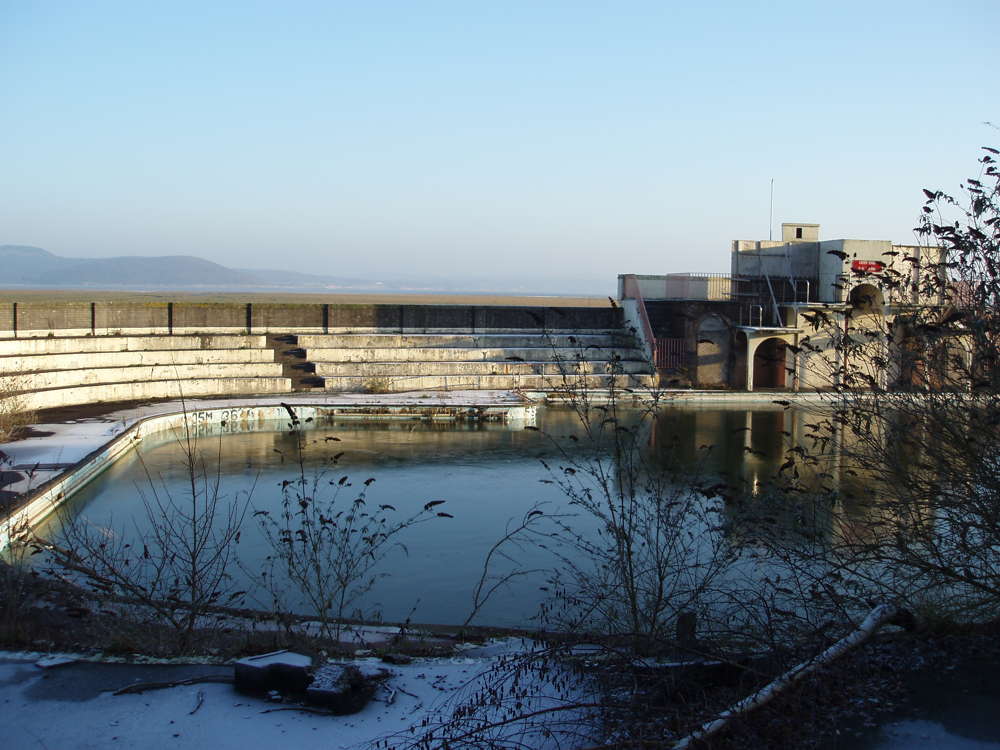"now derelict open air swimming poll, grange-over-sands"