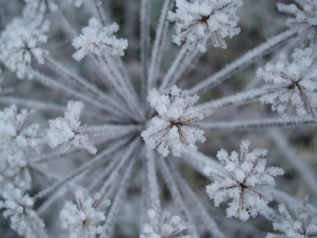 "frosted winter plan macro image, a seed head covered in ice crystals"
