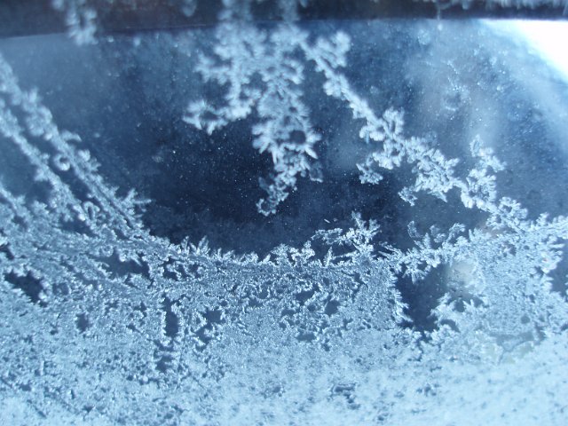 "macro image of frost crystals on a car windscreen"