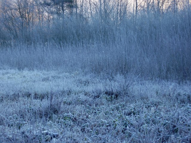 "a cold dawn over a frozen country meadow"