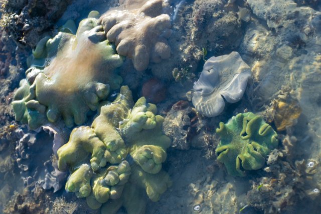 "soft coral coliforms, genus Sarcophyton (leather corals) and other coral types"