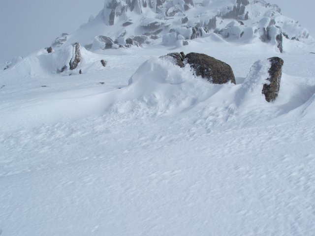 "rocks and wind blown snow"