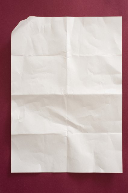 "a folded sheet of A4 paper on burgundy background"
