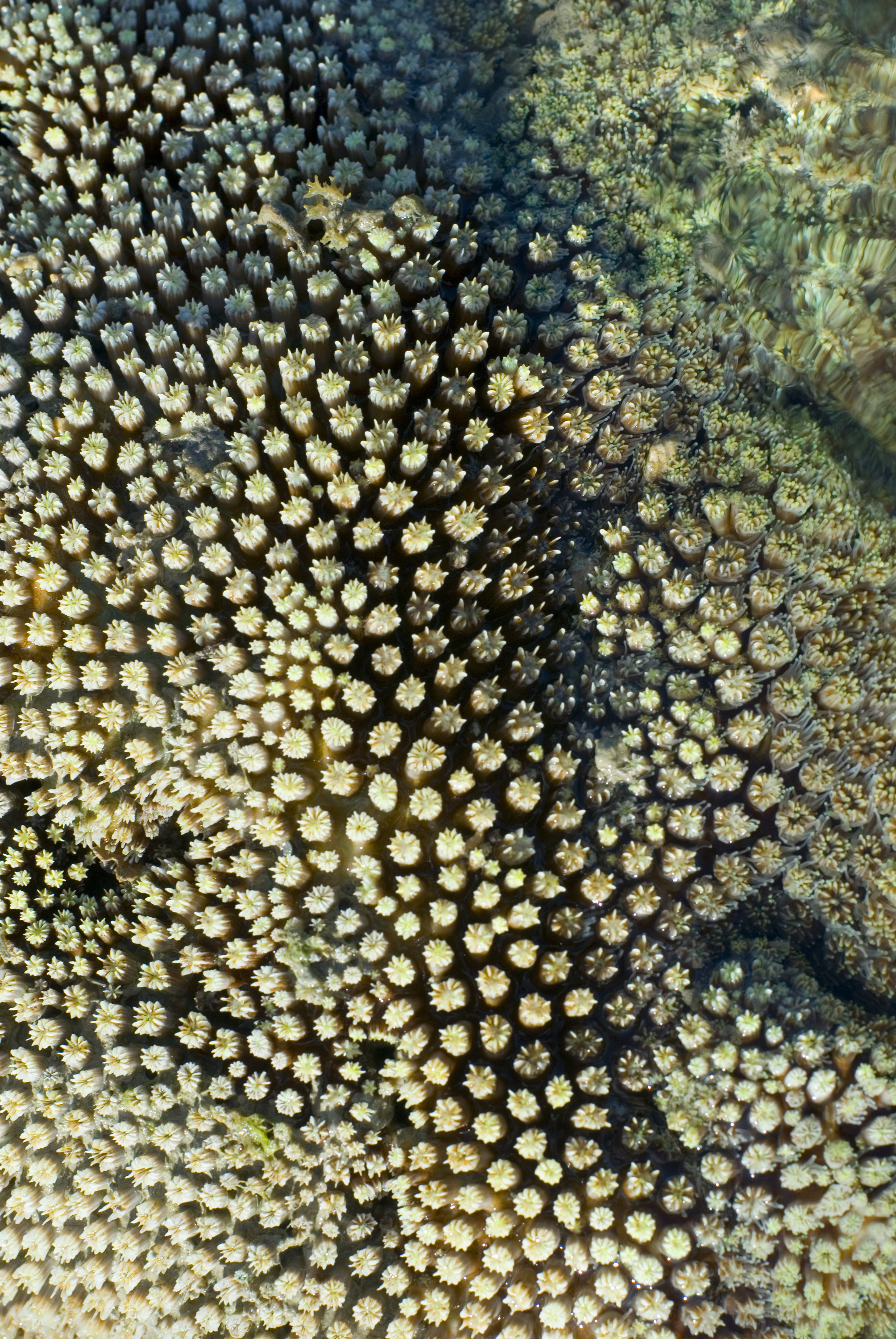 "macro image of an array of hard coral polyps"