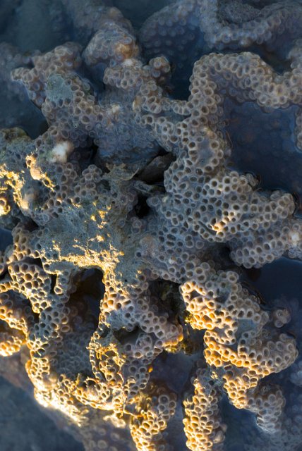 "perforated texture of a colony of hard coral exposed above the water"
