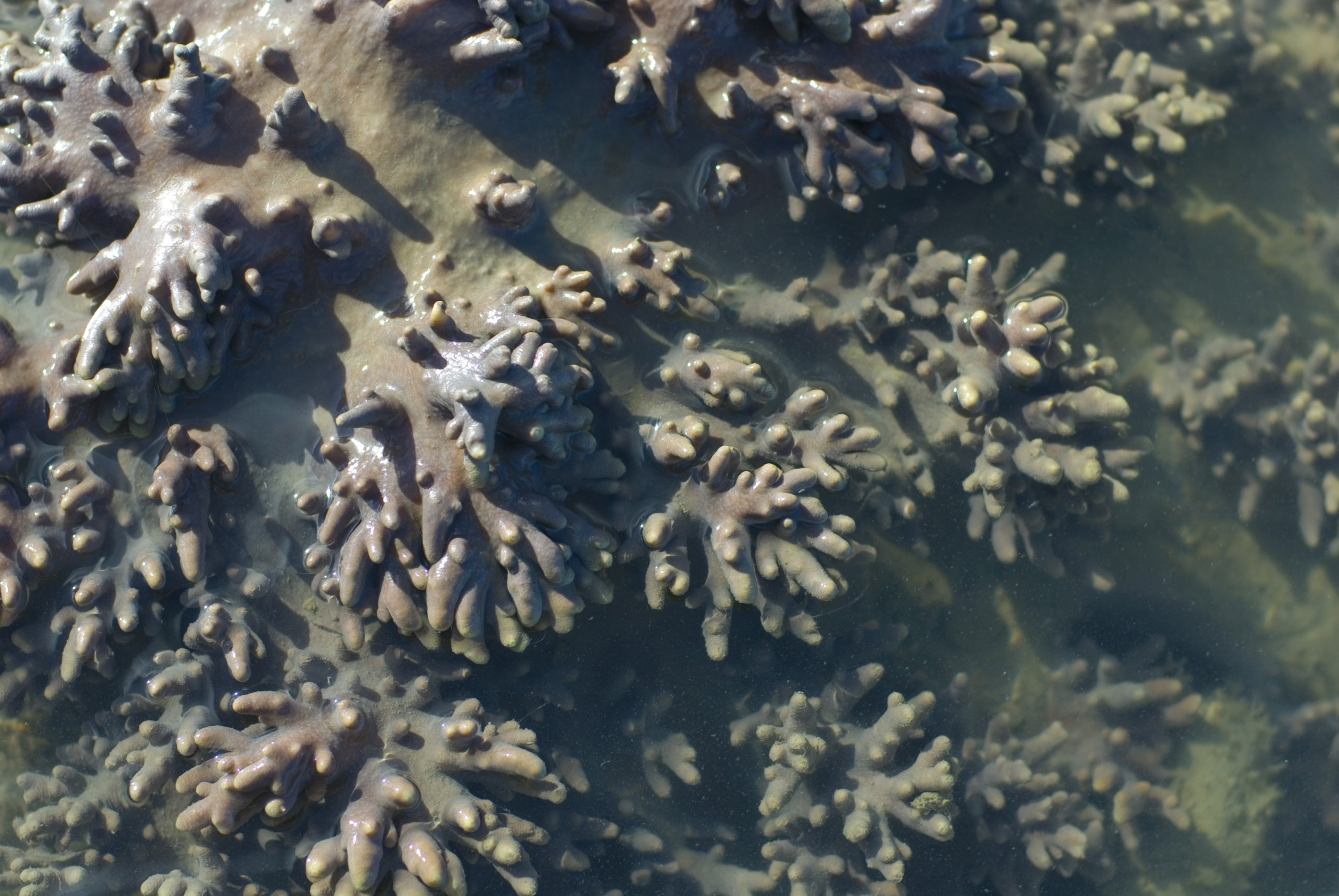 "fingers of soft coral growth on a shallow water reef"