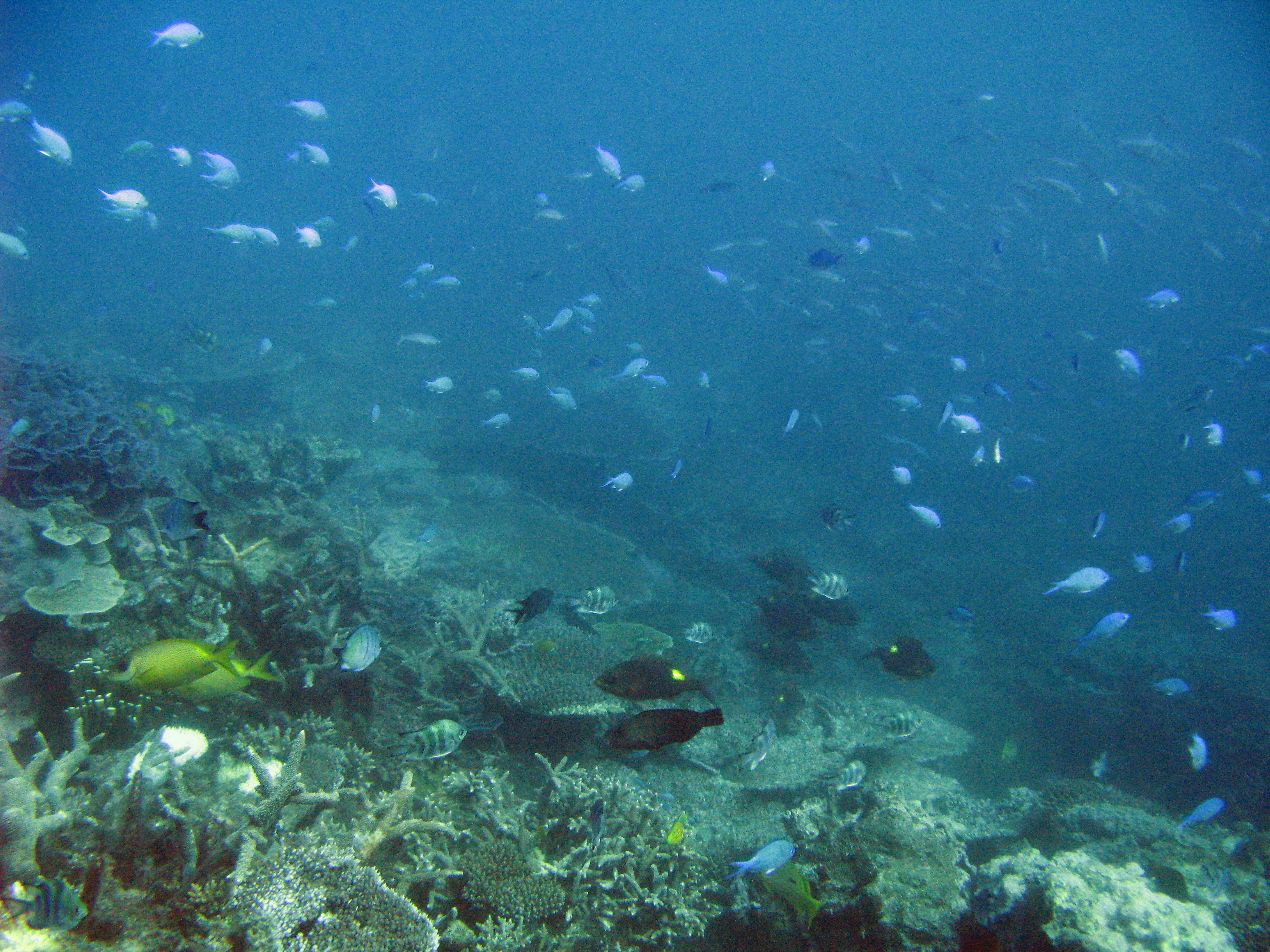 schools of fish swimming amongst a coral reef