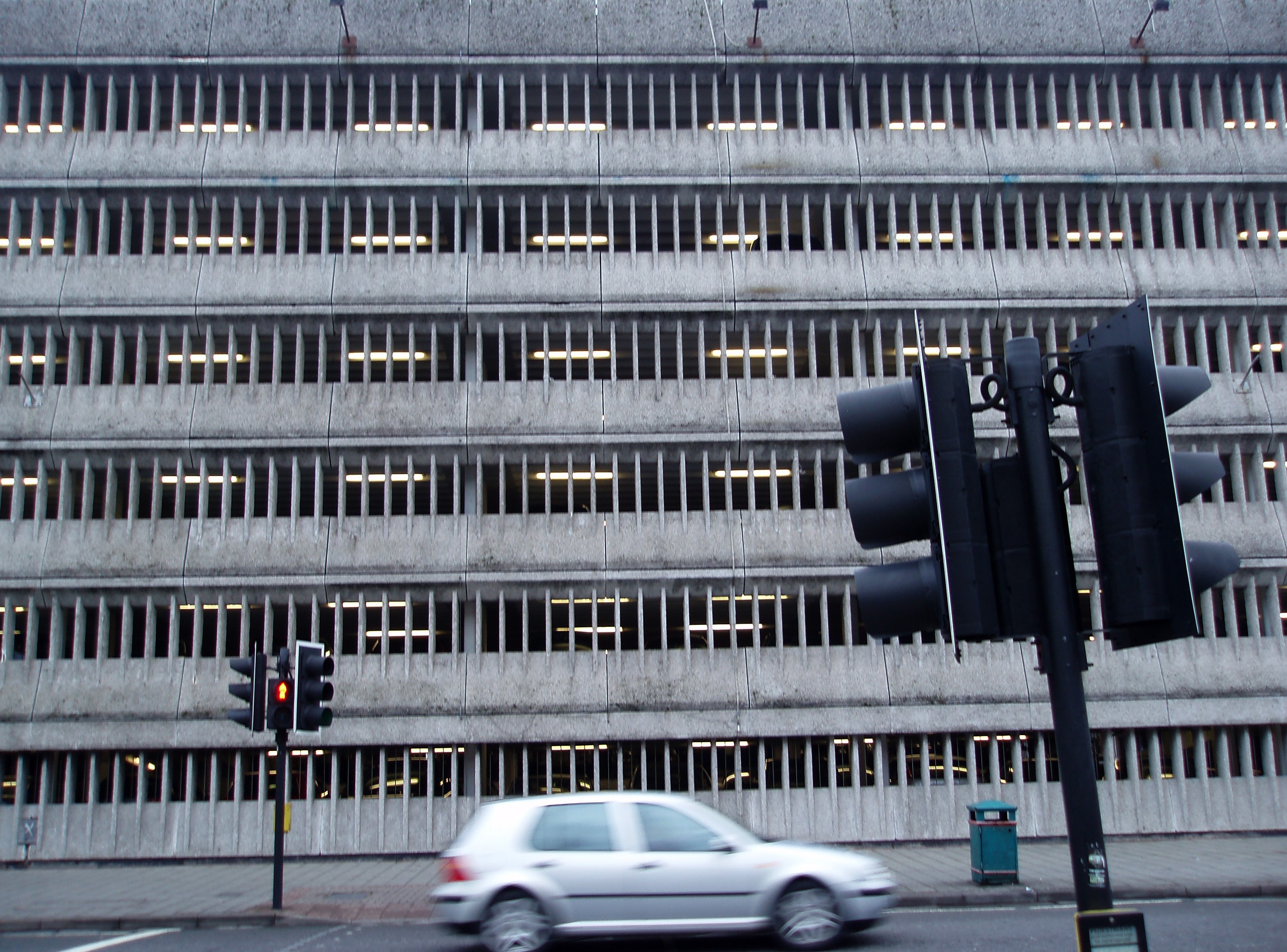 "dirty looking concrete car park"