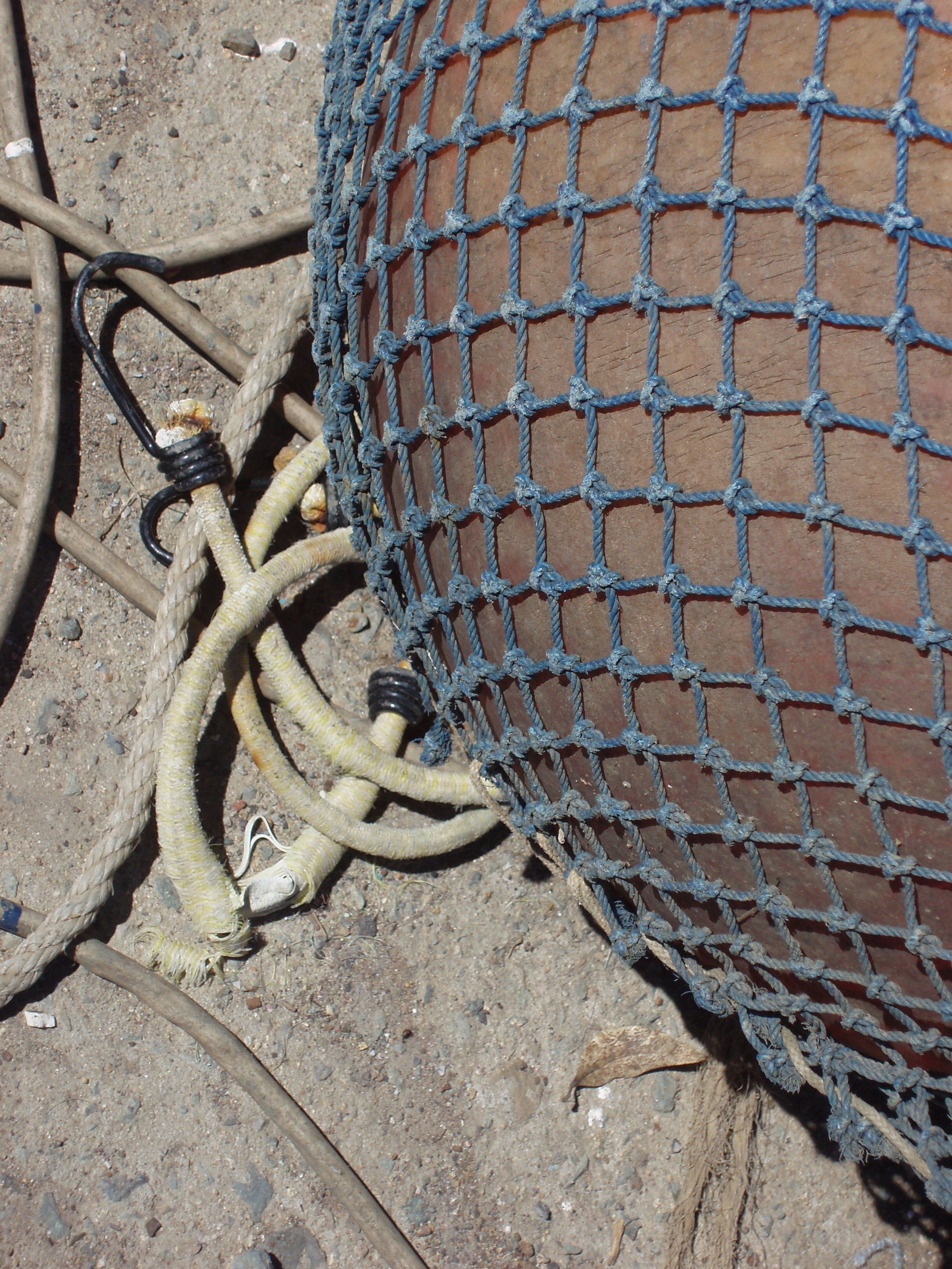 "a marine float and net on a quayside"