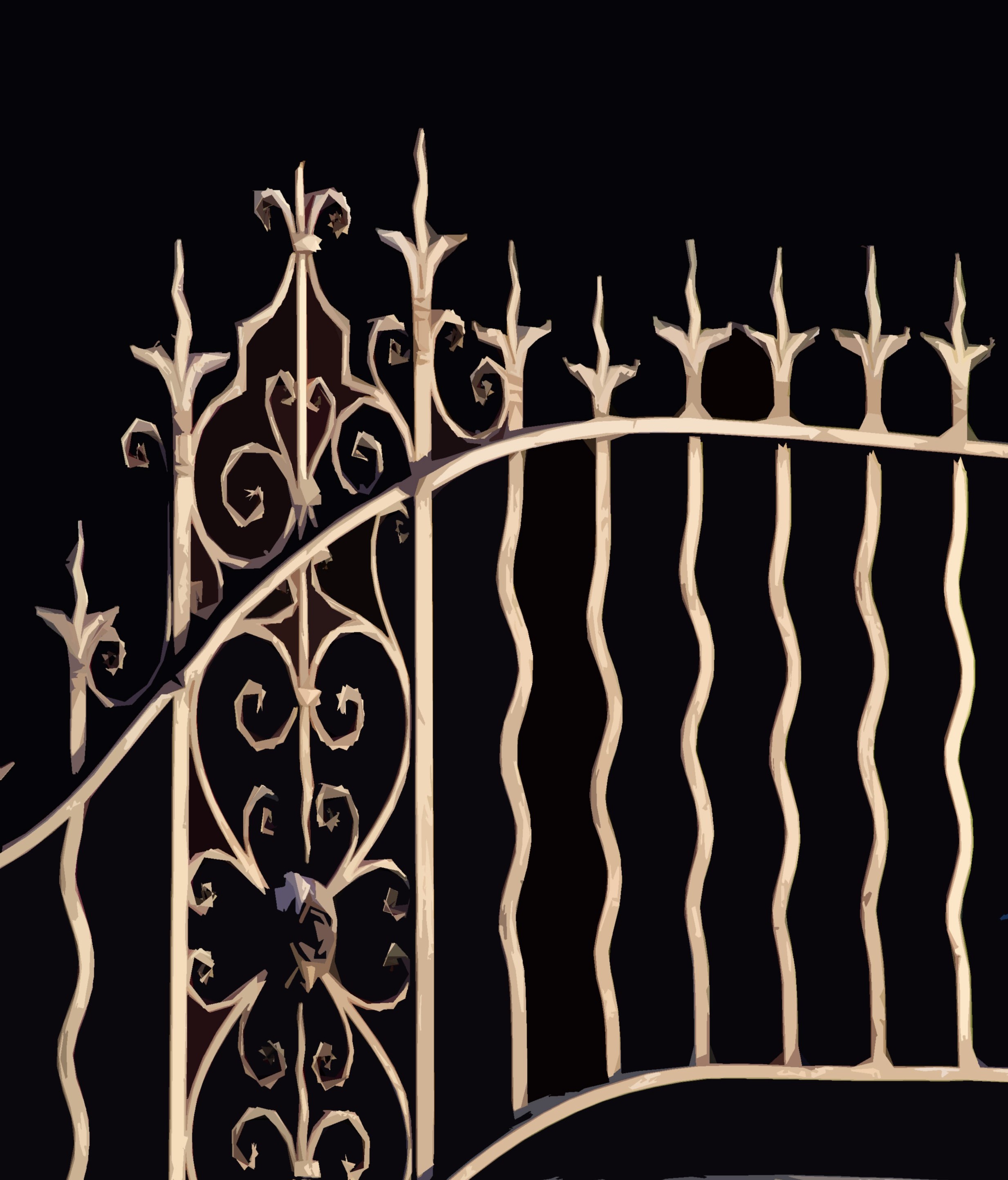 "old iron fence pattern on black background"