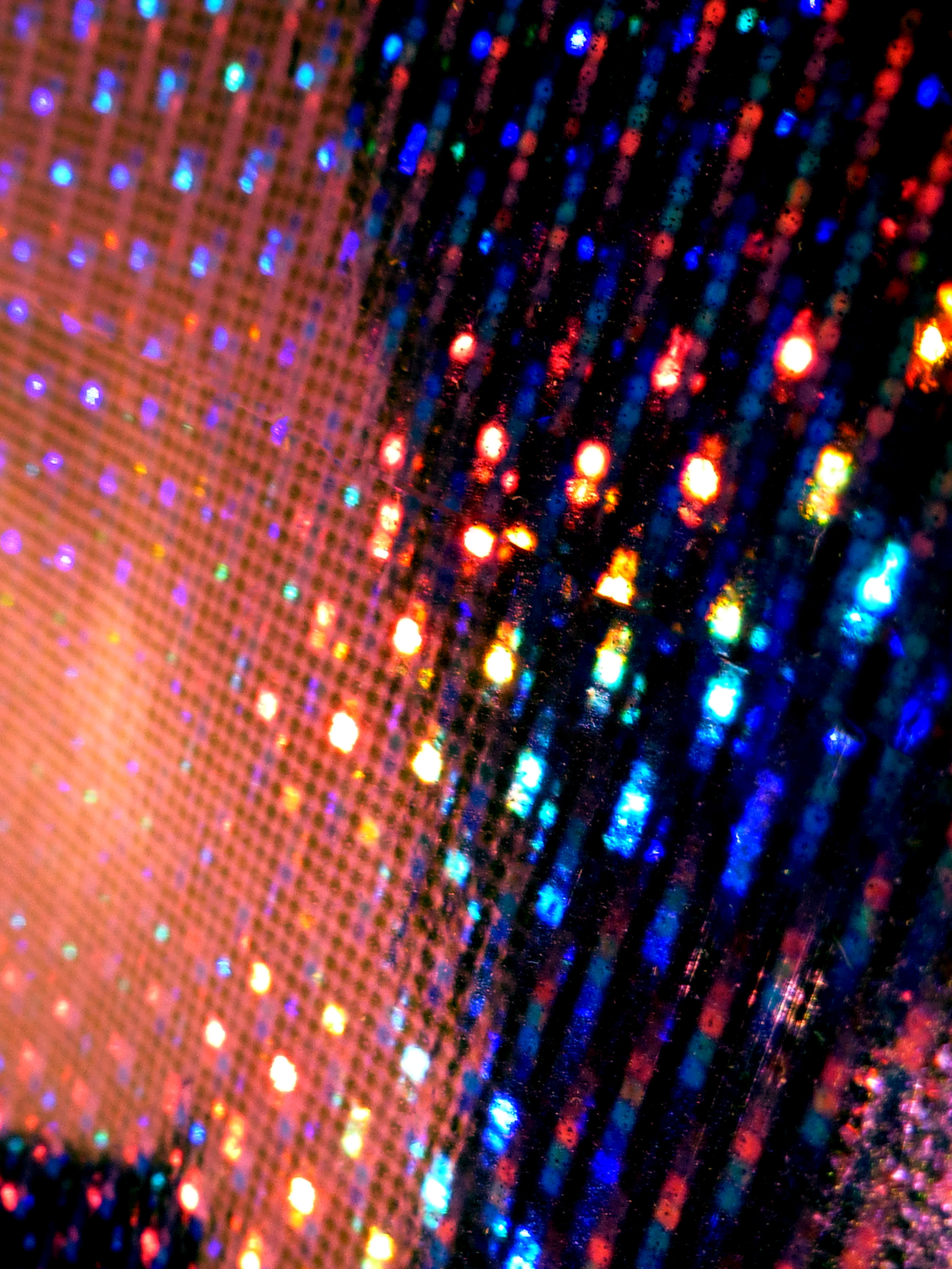 "colorful light created through reflections from a layer of holographic foil"