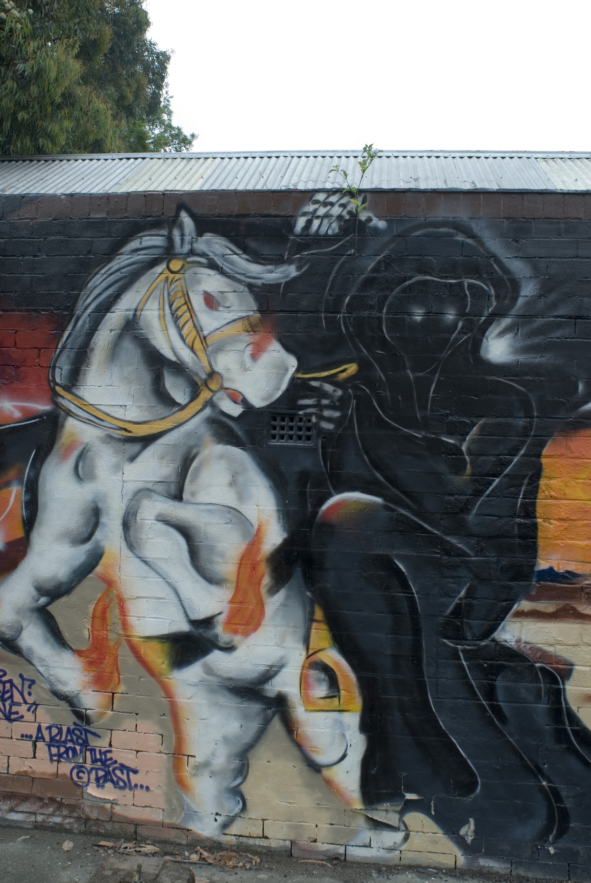 urban art, paint on brick graffiti grim reaper cr103.com cr103.com