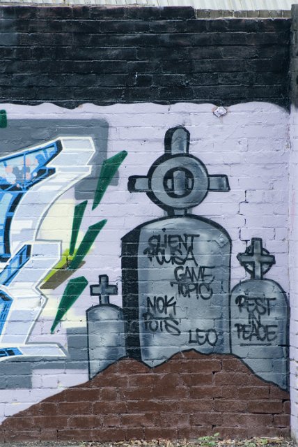 "memorial urban art, paint on brick"