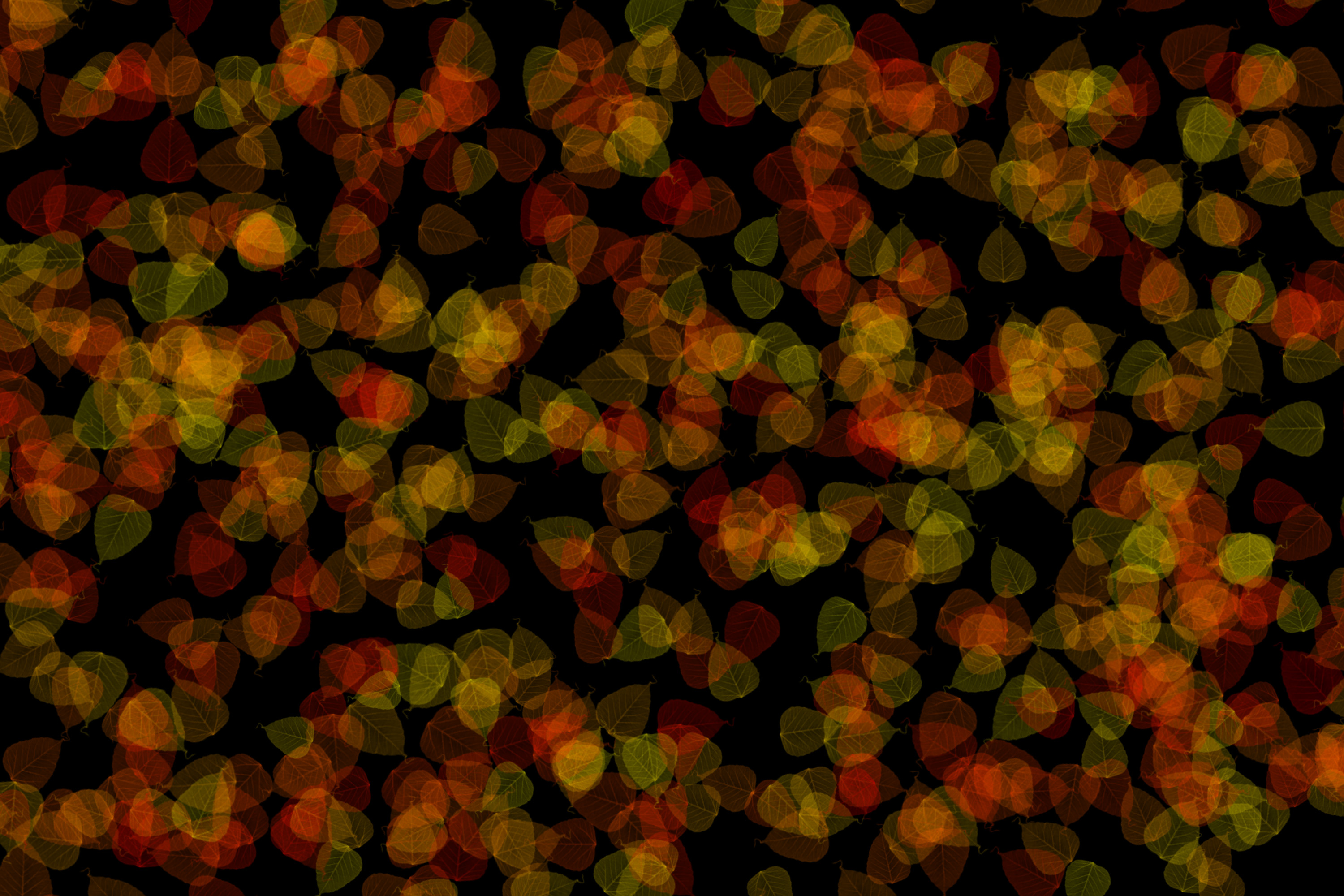 "soft autumnal colours red orange leaves on a black backdrop"